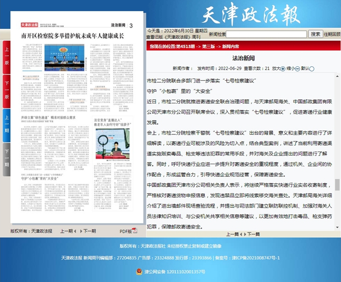 【天津政法报】市检二分院联合多部门进一步落实“七号检察建议” 守护“小包裹”里的“大安全”