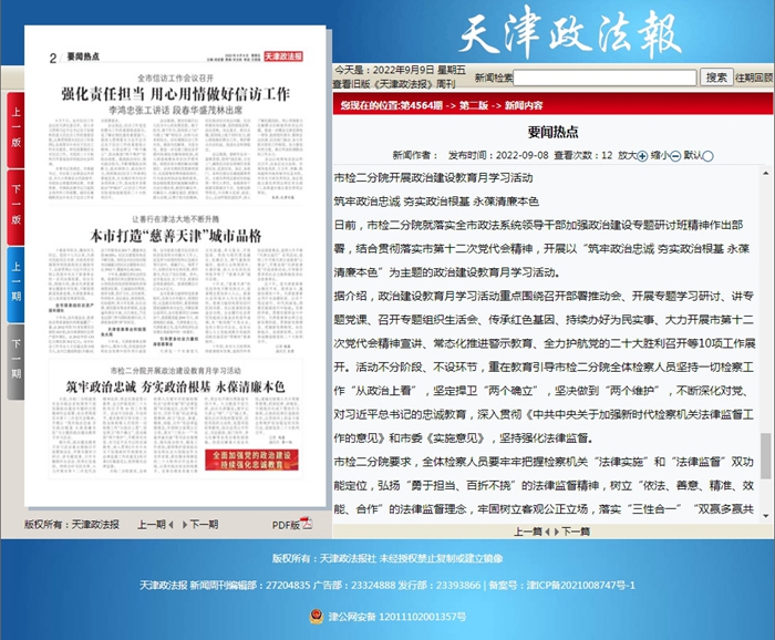 【天津政法报】市检二分院开展政治建设教育月学习活动