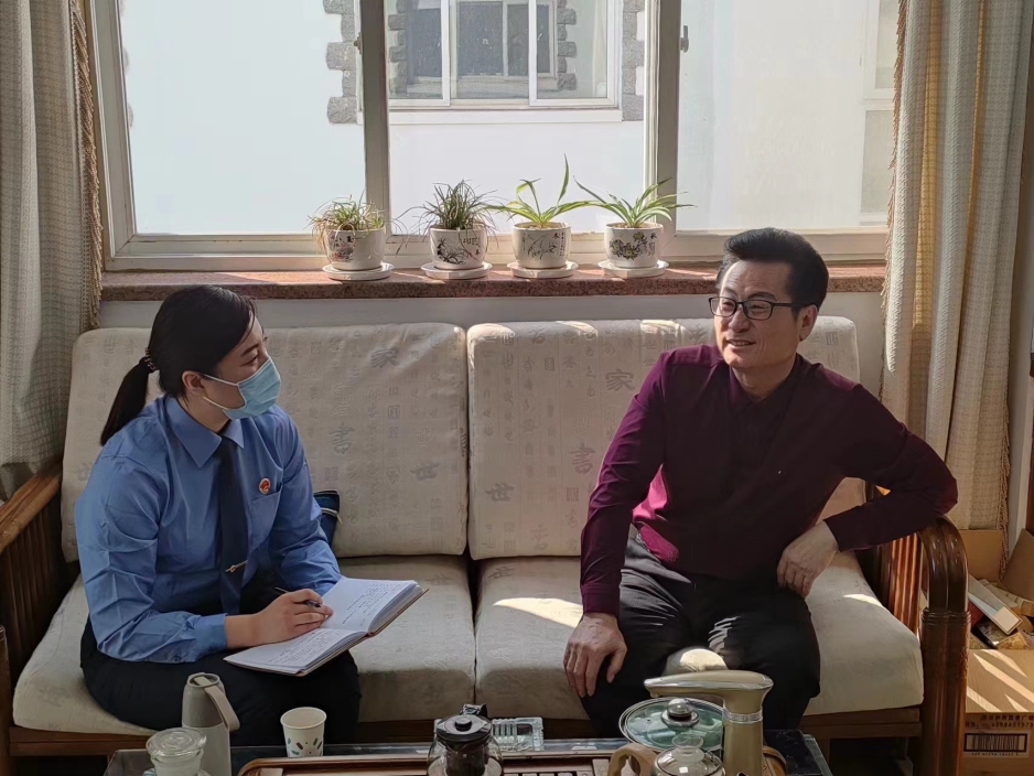 近日,第四检察部检察官针对两会期间人大代表对检察工作提出的具体意见,主动走访天津市人大代表、武清区政协常委、武清区书法家协会副主席刘士来,回应代表关切,面对面征求意见建议。
