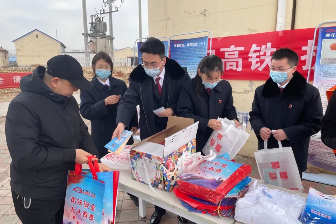 近日,天津铁路运输检察院干警前往京津城际铁路沿线,与中国铁路北京局集团有限公司北京高铁工务段永乐高铁线路车间、武清区豆各庄镇护路办等单位联合开展“聚焦平安高铁、护航和谐两会”主题普法宣传活动。活动中,检察干警立足公益诉讼检察职能,结合高铁安全事故案例,宣讲《中华人民共和国铁路法》《铁路安全管理条例》等法律法规,督促沿线相关单位切实履行主体责任,消除各类安全隐患,保障铁路安全运行、保护人民群众生命财产安全,引导沿线居民增强法治意识和安全意识,群策群力共保平安。