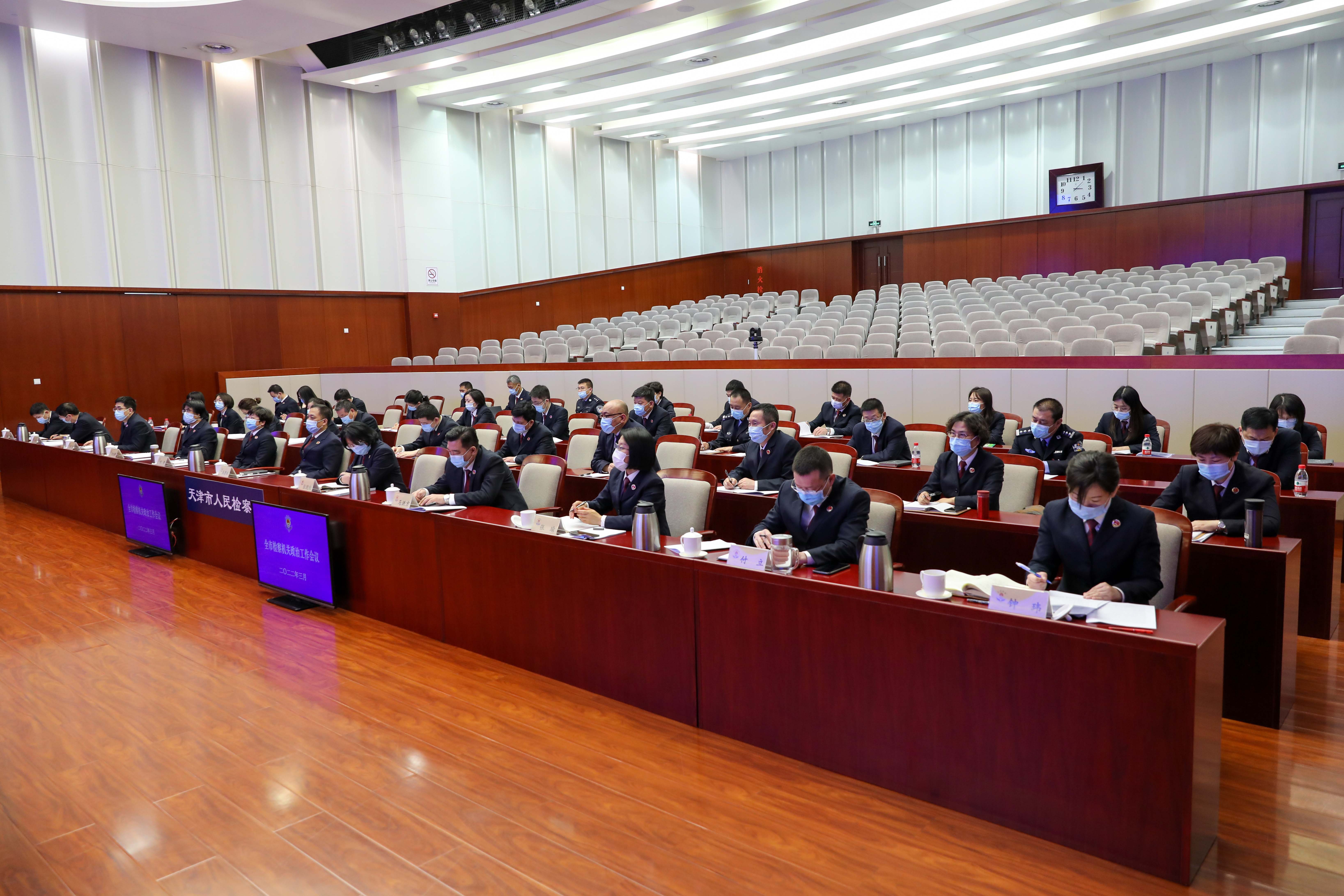 会议严格执行疫情防控要求,以视频会议形式召开。市检察院政治部、检务督察部、机关党办、机关纪委、机关工会、离退休干部室全体干警在主会场参会,各分院、基层院、检察官学院相关同志在分会场参会。