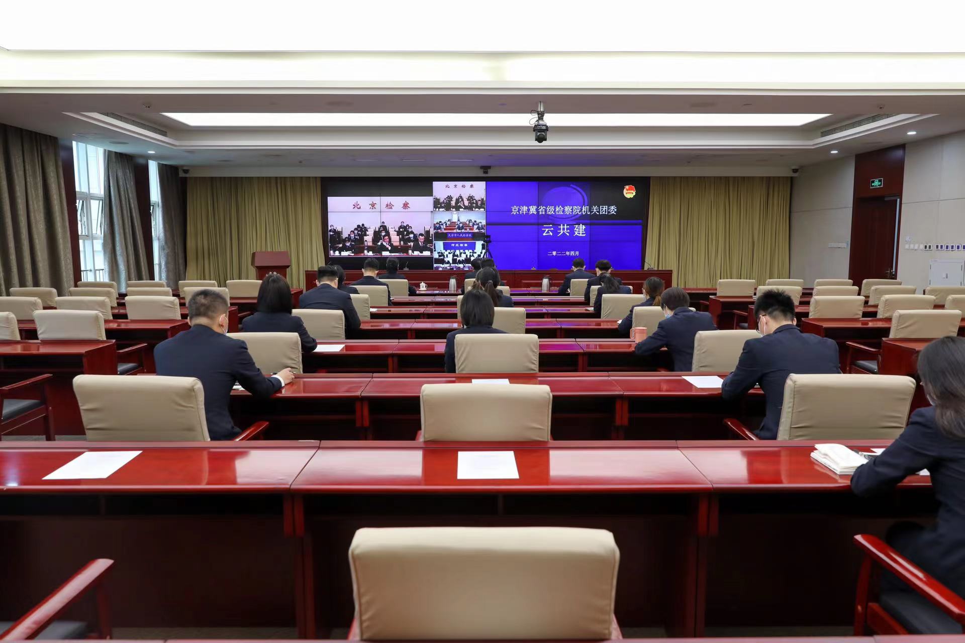 4月24日,在“五四青年节”即将到来之际,京津冀省级检察院机关团委通过视频会议形式开展“云共建”活动。北京市检察院党组成员、政治部主任王海江,天津市检察院党组成员、政治部主任王德群,河北省检察院党组成员、政治部主任任国强出席活动并致辞。