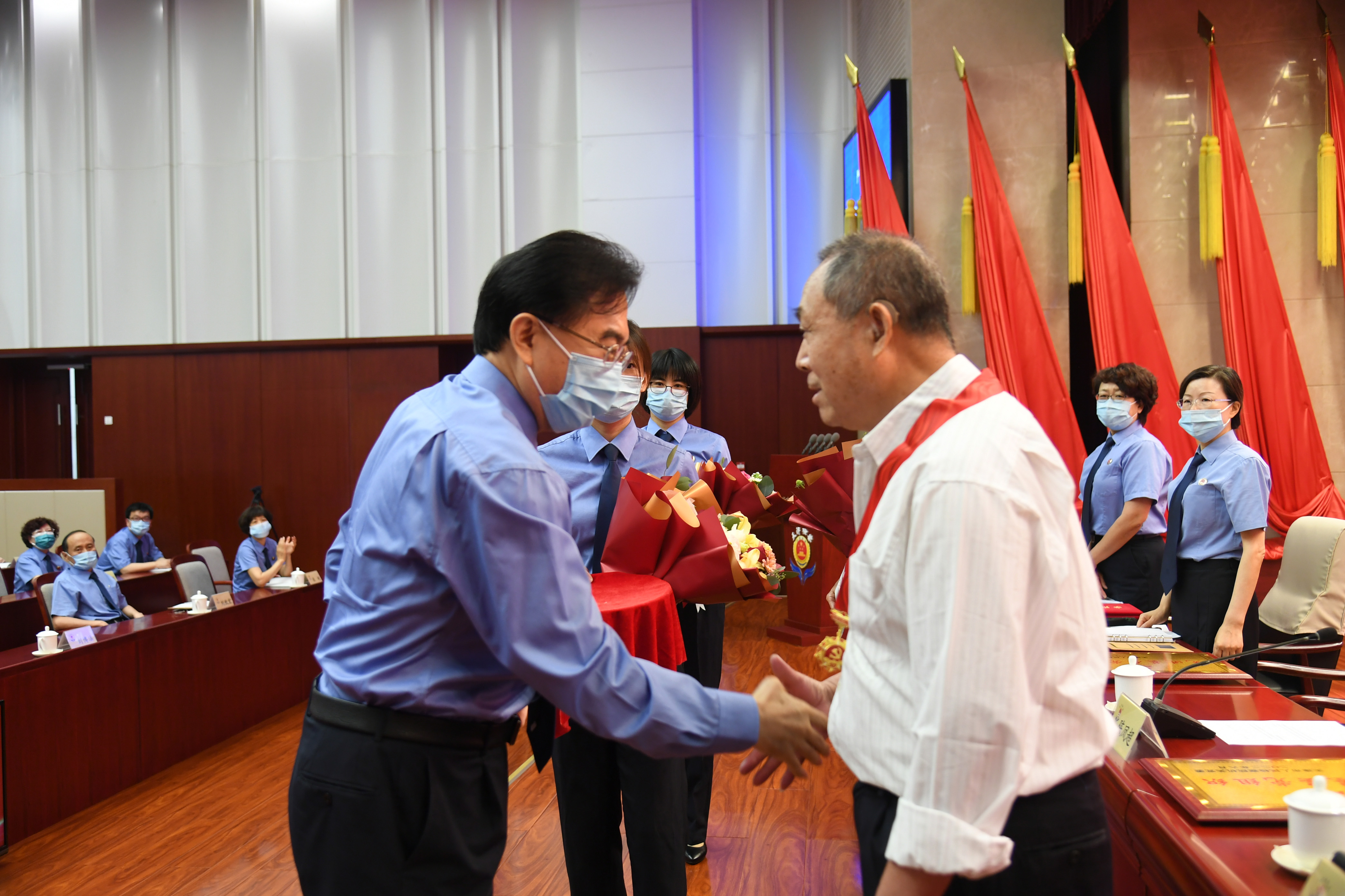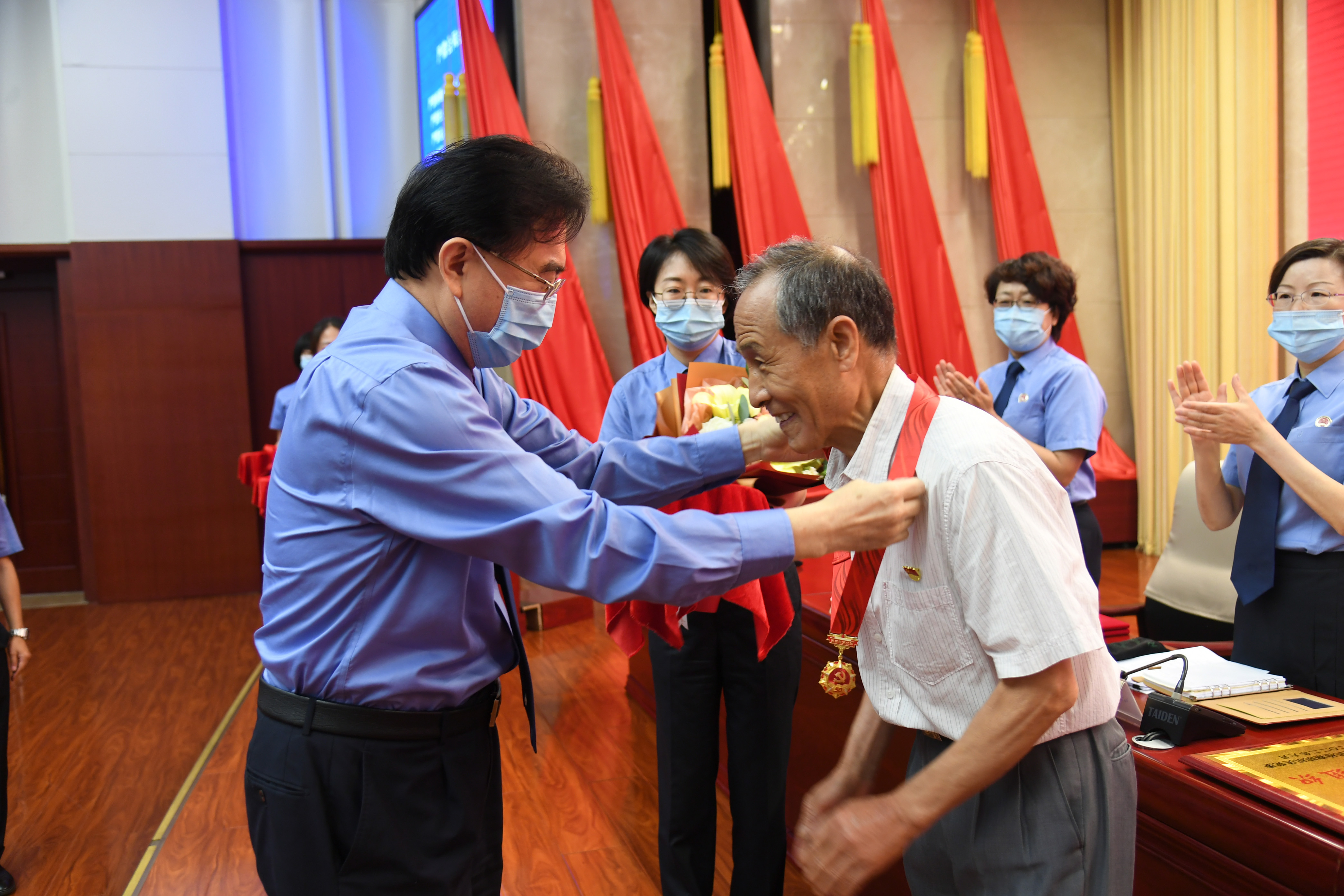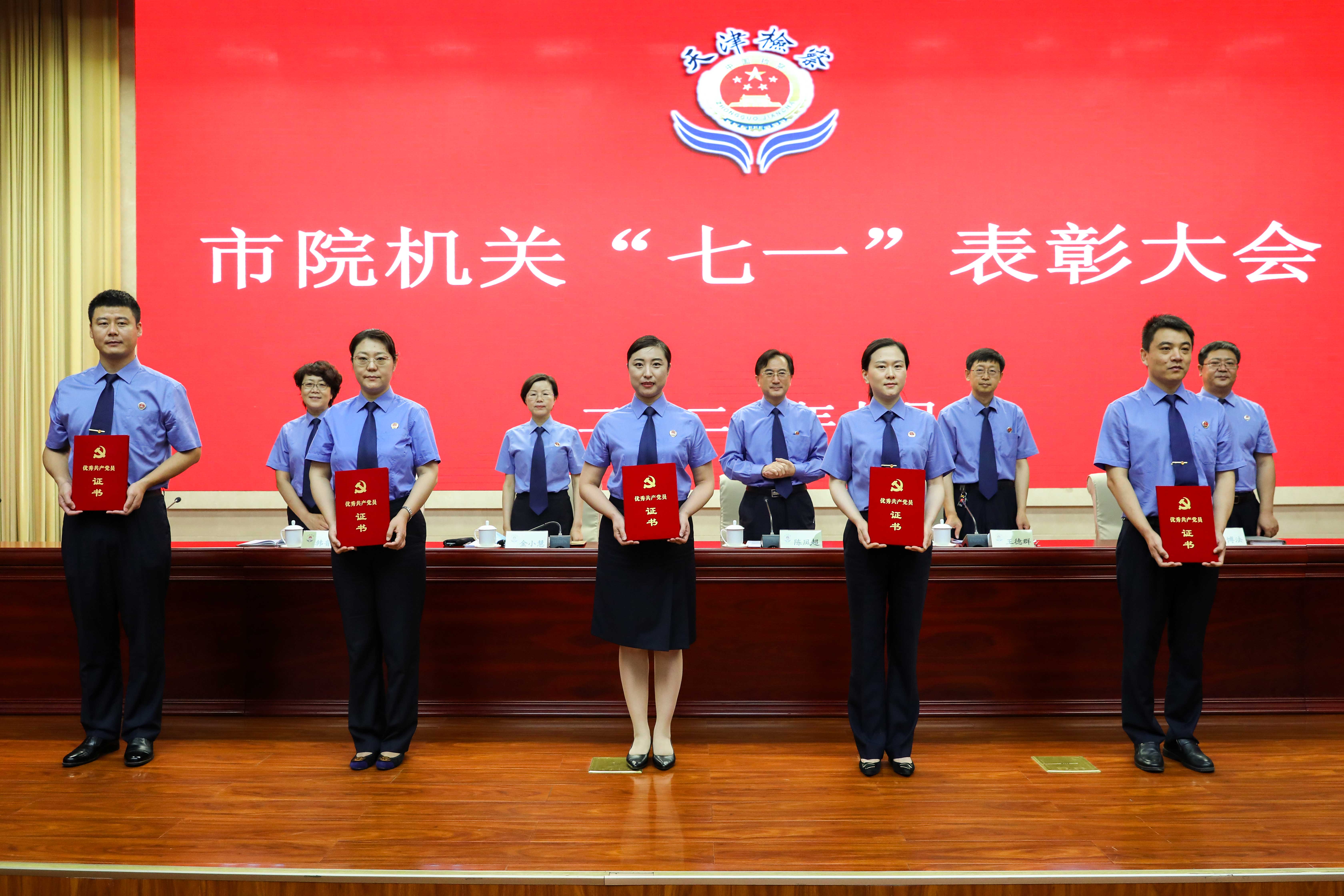 7月1日上午,为认真学习贯彻市第十二次党代会精神,深入开展“迎盛会、铸忠诚、强担当、创业绩”主题学习宣传教育实践活动工作,市检察院机关召开“七一”表彰大会,向退休干部党员颁发“光荣在党50年”纪念章,对今年以来在检察工作中涌现出的优秀共产党员、优秀党务工作者和先进基层党组织进行表彰。市检察院党组书记、代理检察长陈凤超出席大会。