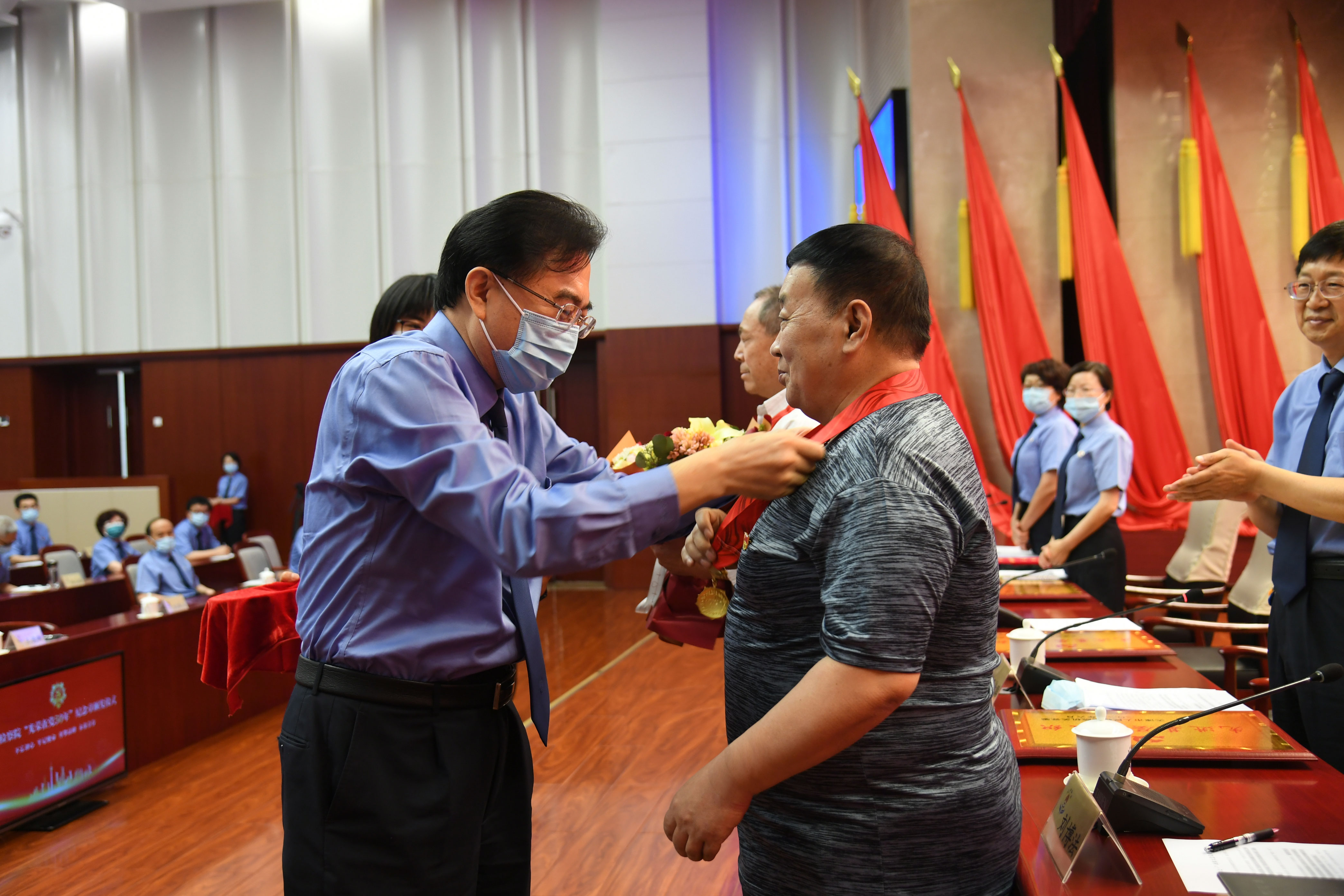 与会院领导为受到表彰的先进集体和个人代表颁发了奖牌和证书。
