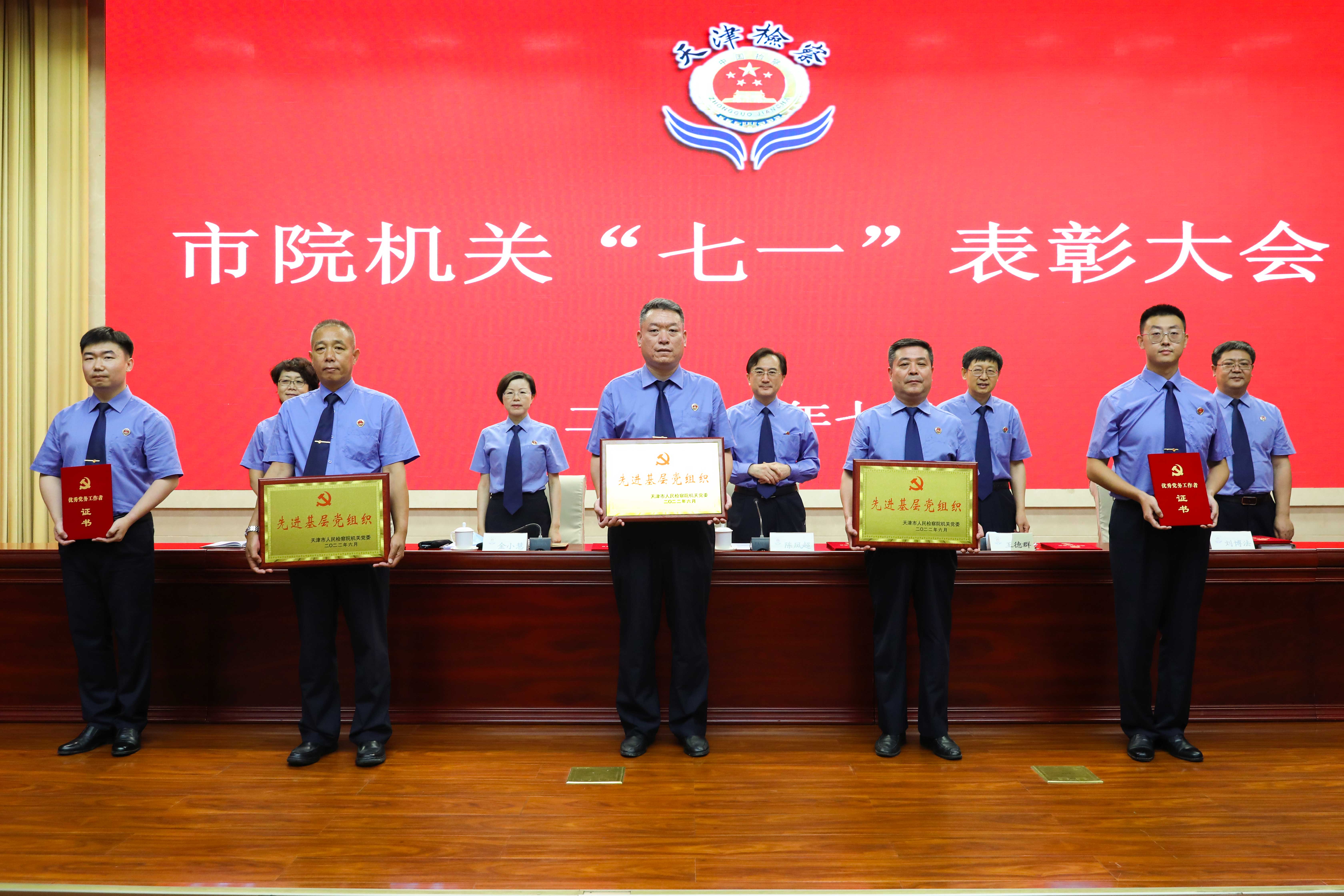 市检察院机关全体党员干警,退休干部党员代表,天津铁路运输检察院、天津检察官学院部分党员干警代表参加。