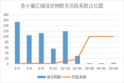 图1:各分值区域信访例数及风险系数占比图