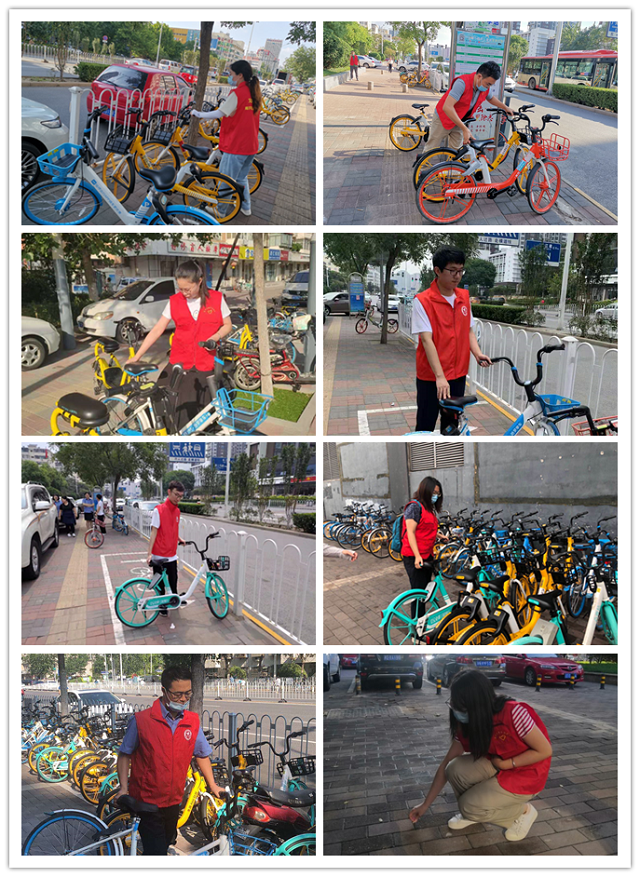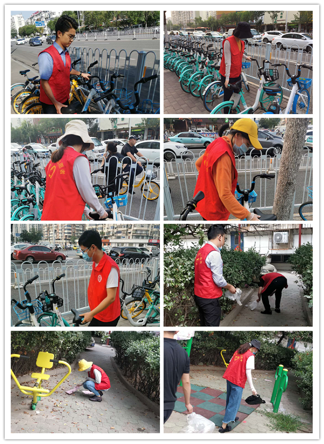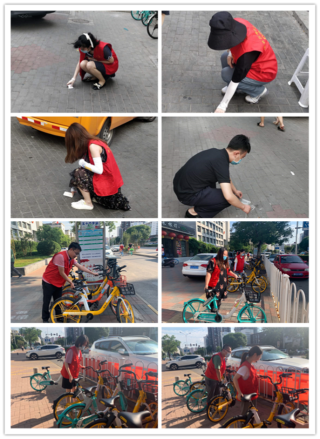 我院35周岁以下青年干警分四组,分别在我区广开四马路地铁站附近、广开四马路主干道、广开街广林园社区等地开展共享单车清整、宣传垃圾分类、社区清洁等志愿服务。我院青年志愿者无畏酷暑,利用8小时外的时间,对各类停放不当的共享单车进行集中规整,主动捡拾路面垃圾,劝导、制止乱丢垃圾的不文明行为,用行动践行了“奉献、友爱、互助、进步”的志愿服务精神,助力我区创文创卫工作。